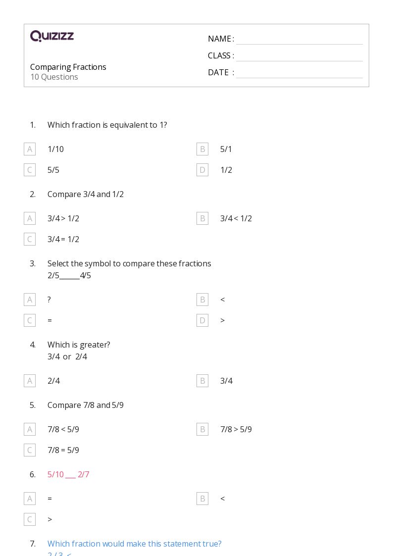 50+ Comparing Fractions Worksheets For 3rd Grade On Quizizz