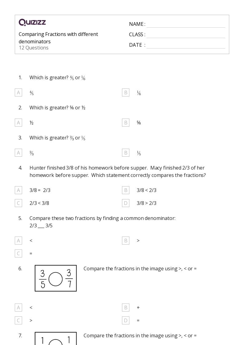 50+ Comparing Fractions With Unlike Denominators Worksheets For 3rd Class On Quizizz